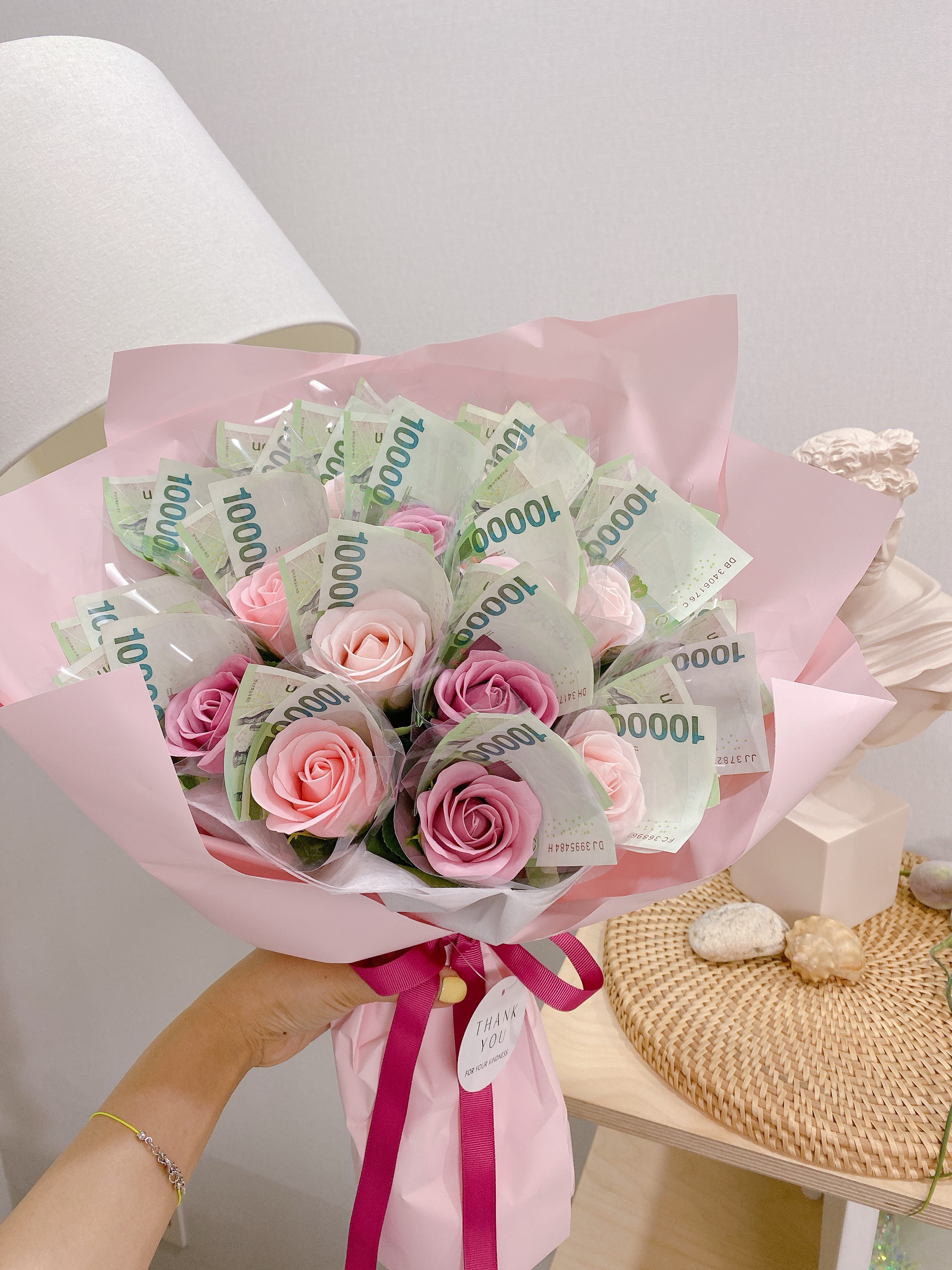 다른 꽃다발과는 달리 영상에서 보시듯 지폐를 넣어서 반전을 줄 수 있는 제품이었는데요. 물론 꽃다발만 받으시면 좋아하실 텐데, 안에 들어있는 걸 보면 더 좋아하실 것 같아서 주기 전부터 설렜습니다.