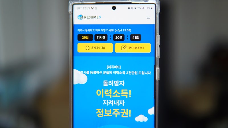크게 다음 두 가지로 나눌 수 있습니다. ① 이력서는 헤드헌터 자격을 갖춘 사람만 볼 수 있습니다. ② 헤드헌터가 이력서를 조회할 경우 해당 이력서는 보험회사나 기존 회사 인사팀에서는 열람할 수 없습니다. 또한, 지금까지 구직자는 이력서를 볼 수 없습니다. 정보가 노출되더라도 보상을 받을 방법이 없었다. 이력서 9에는 헤드헌터가 조회할 때마다 이력 소득 포인트 1,000점이 적립된다. 위 혜택은 구직자로서 이전에 누리지 못했던 정보주권을 되찾게 된다는 점입니다. 헤드헌터의 이력서 열람 수수료를 구직자와 공유하는 최초의 채용 플랫폼입니다. 더 중요한 것은 채용 그 자체이다. 실시간 헤드헌팅 채용 공고 요즘 AI를 활용한 채용 시스템이 있는데, 맥락 대화 측면에서 내가 원하는 조건을 정확하게 반영하지 못하는 경우가 많습니다. RESUME9 채용 플랫폼에서는 헤드헌터의 연락을 받으면 상황에 맞는 대화와 상담이 가능합니다. 이를 통해 더 원하는 회사로 안내받을 수 있습니다. 특히 현 직장에서 이직을 고려하고 있다면 시간이 부족할 수도 있지만, RESUME9 채용 플랫폼을 통해 시간과 노력을 절약하고 이직을 할 수 있습니다. 정보주권을 통해 얻은 역사적 소득이 무엇인지 알아보자. 2. 역사적 소득이란 무엇입니까? 어떻게 사용하나요? 이력서 등록시 3,000포인트를 받으실 수 있으며, 헤드헌터가 이력서를 조회할 때마다 1,000포인트가 적립됩니다. 포인트는 리워드몰을 통해 현금처럼 사용하실 수 있습니다. 리워드몰에 들어오시면 책, 상품권, 마트, 베이커리, 치킨, 피자, 커피 등 원하는 모든 것을 쇼핑하실 수 있습니다. 근처 편의점에서도 과거 소득에 따른 포인트로 구매가 가능하고, 스타벅스, 폴바셋, 메가커피 등도 이용할 수 있습니다. 3. 이력서 등록 방법 30초 만에 회원가입을 한 뒤 클릭했습니다. ‘이력서 작성’. 이력서 작성시 필수사항과 선택사항이 있습니다. 필수정보는 인적사항, 핵심역량, 교육, 자기소개 입니다. 경력, 희망 근무조건, 채용우대자격, 어학능력, 자격증 등의 항목은 선택사항입니다. 하지만 자신이 원하는 분야에 취업할 준비가 되어 있는지 확인하고 싶다면 관련 측면을 강력하게 어필하는 것이 좋을 것 같습니다. 4. 제주도 항공권 프로모션 이벤트 소개 5월 한 달간 총 3개의 프로모션 이벤트를 진행합니다. ① 이력서 등록 시 지급되는 3000포인트 : 6월 4일까지 ② 제주항공 항공권 2매 : 5명 추첨 ③ 스타벅스 커피쿠폰 증정 : 100명 추첨 이벤트 참여 방법을 알아봅시다. 앞서 소개드린 바와 같이 회원가입 후 이력서를 등록하시면 자동으로 300포인트와 함께 제주도 항공권, 커피쿠폰 이벤트에 참여하게 됩니다. 당첨자 발표는 2023년 6월 9일까지이며, 홈페이지와 인스타그램을 통해 발표됩니다.